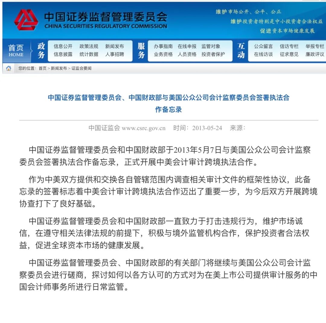 中国证券监督管理委员会、中国财政部与美国公众公司会计监察委员会签署执法合作备忘录全文如下图。