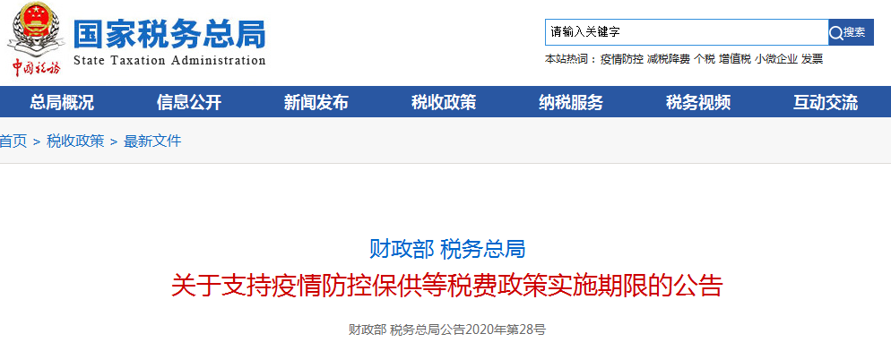 为支持疫情防控、企业纾困和复工复产,现将有关税费政策实施期限公告如下: