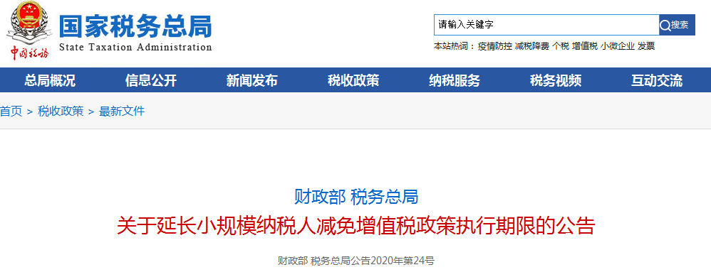 《财政部税务总局关于支持个体工商户复工复业增值税政策的公告》(财政部税务总局公告2020年第13号)规定的税收优惠政策实施期限延长到2020年12月31日。