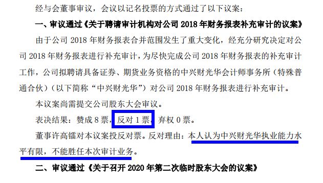 由于公司2018年财务报表合并范围发生了重大变化,文化长城决定聘请中兴财光华对2018年财务报表进行补充审计,但在董事会召开的相关议案表决之时,出现了本文开头的那一幕。