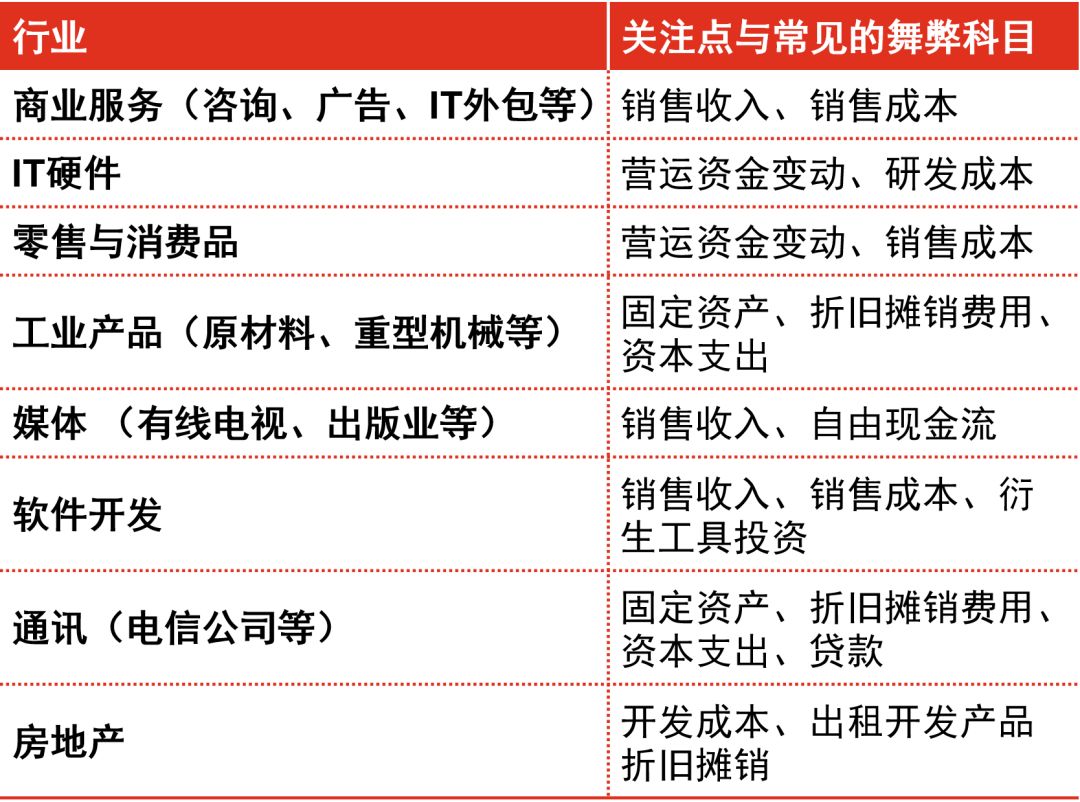 舞弊手段多样,且呈行业特性